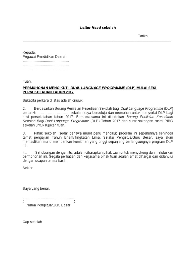 Format Surat Permohonan Sekolah Untuk Mengikuti Dlp Pdf